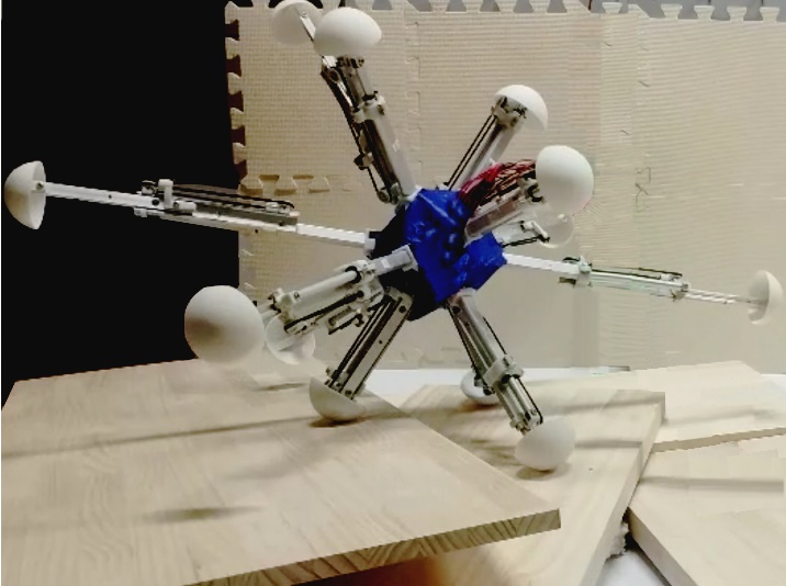 动力学与控制系,指导老师为于洋教授。该实验室长期致力于开发面向行星表面极端复杂地形的仿生变形机器人研究,研发了多款仿生机器人。该参赛团队以海胆为灵感,设计出一款可自主适应极端复杂地形的径向骨架机器人,采用仿海胆结构和基于强化学习方法的自主运动策略。通过在仿真环境下的控制策略预训练可实现陌生非结构化环境探测任务的快速部署。相较同类机器人平台具备良好的静态和动态平衡性,具备全向运动、无倾覆、变形能力强、低成本等优势。可作为运动平台服务于未来大规模行星探索、地球极端地形科考、灾害救援等无人环境巡逻探测场景。