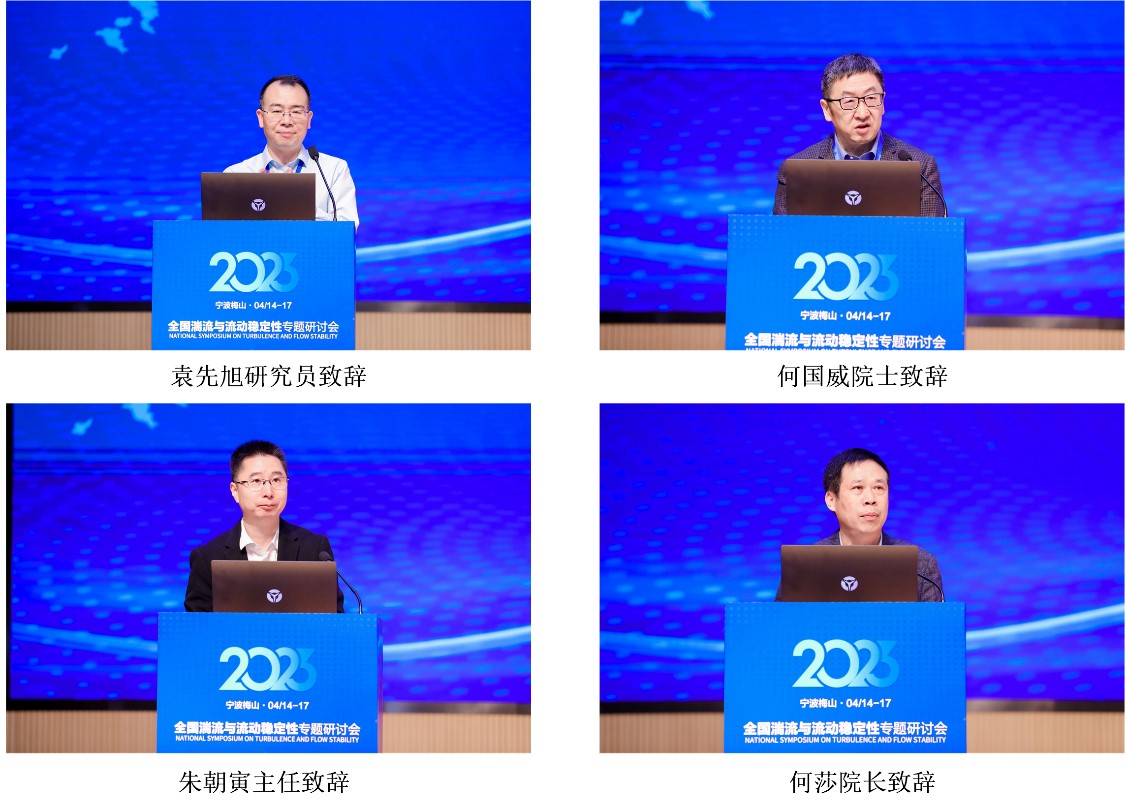会议开幕式由潘翀教授主持,空天飞行空气动力科学与技术全国重点实验室袁先旭研究员、中国科学院力学研究所学术所长何国威院士、宁波经济技术开发区管委会副主任朱朝寅、北航宁波创新研究院执行院长何莎分别致辞。