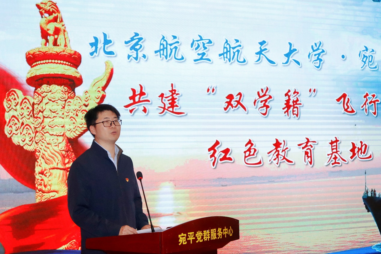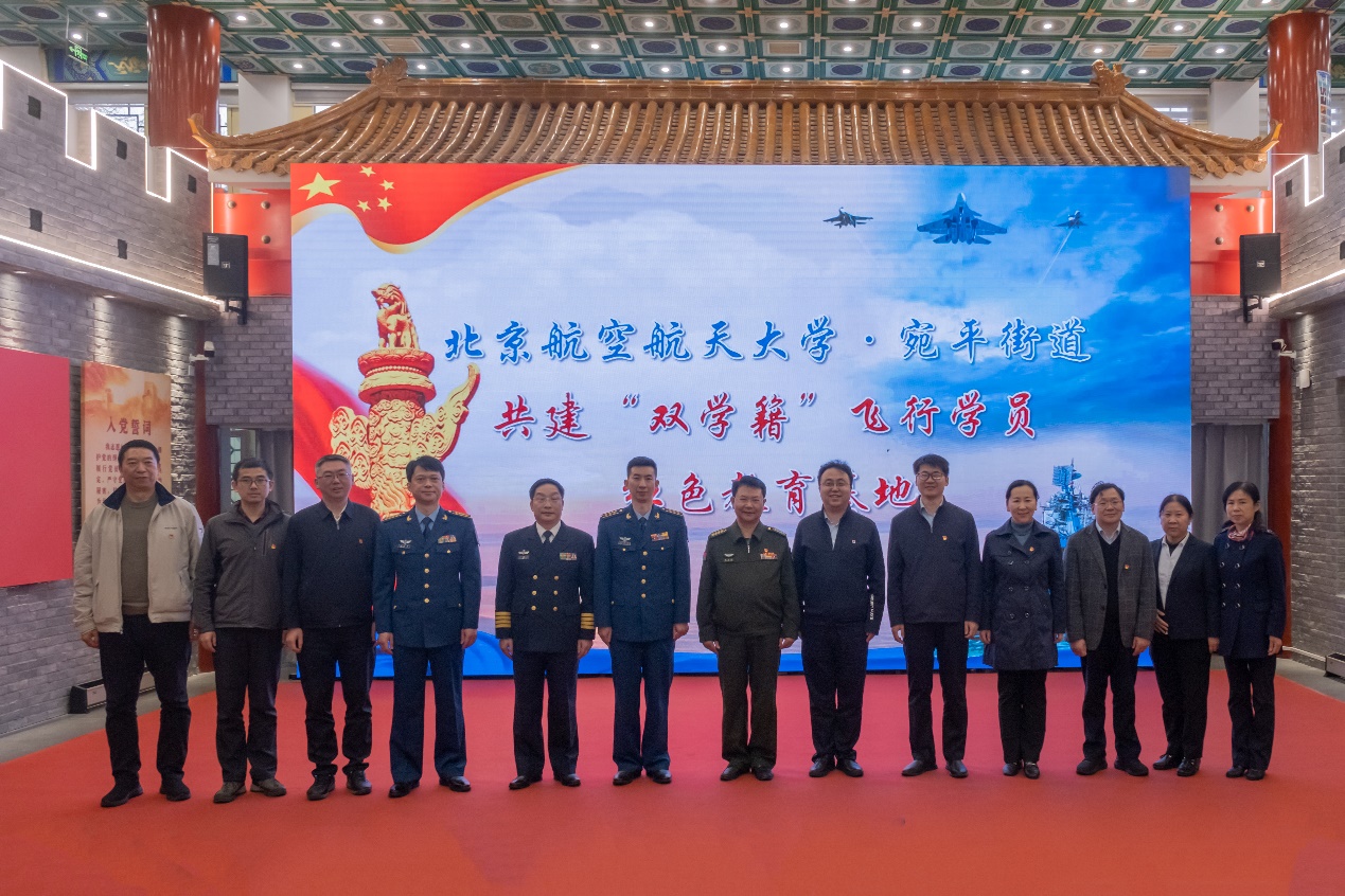 习近平总书记在第十四届全国人民代表大会第一次会议上提出,“我们要只争朝夕,坚定历史自信,增强历史主动,坚持守正创新,保持战略定力,发扬斗争精神,勇于攻坚克难,不断为强国建设、民族复兴伟业添砖加瓦、增光添彩!”4月4日下午,北京航空航天大学-宛平街道共建“双学籍”飞行学员红色教育基地仪式在宛平城举行。丰台区委常委、武装部政委张宏韬,宛平街道党工委书记杨勇;空军招飞局上校副局长蒋华峰,海军航空大学航空基础学院大校政治委员钟魁润,空军航空大学航空基础学院大校副政治委员赵振国,空军航空大学联合培养办公室中校主任李志鹏;北航党委常委、宣传部部长李建伟,学生工作部/党委武装部部长宋晓东,手机百家乐网址大全