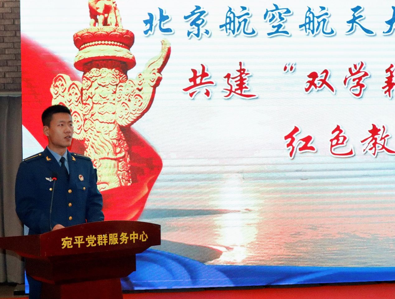 仪式由宛平街道党工委副书记张振主持。杨勇在致辞中提到,宛平街道将为北航师生提供教育场地,做好服务保障,充分发挥宛平城爱国主义和红色教育示范基地的作用,共同开展教育实践,讲好红色故事。在热烈的掌声中,张宏韬与李建伟共同为“北京航空航天大学‘双学籍’飞行学员红色教育基地”揭幕。