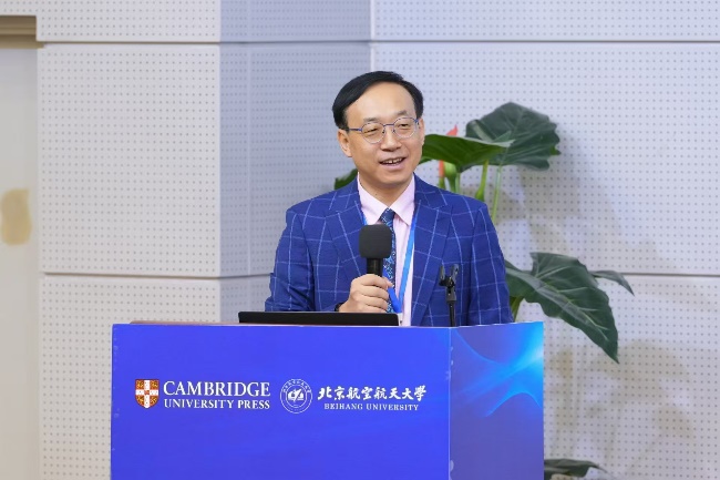 潘群先生代表剑桥出版社发表了开幕式会议致辞。他表示流体力学作为一门跨学科的研究领域,不仅在基础科学研究中具有重要地位,而且在工程应用中发挥着关键作用,希望通过会议为学者们架起沟通的桥梁,并预祝会议圆满成功。