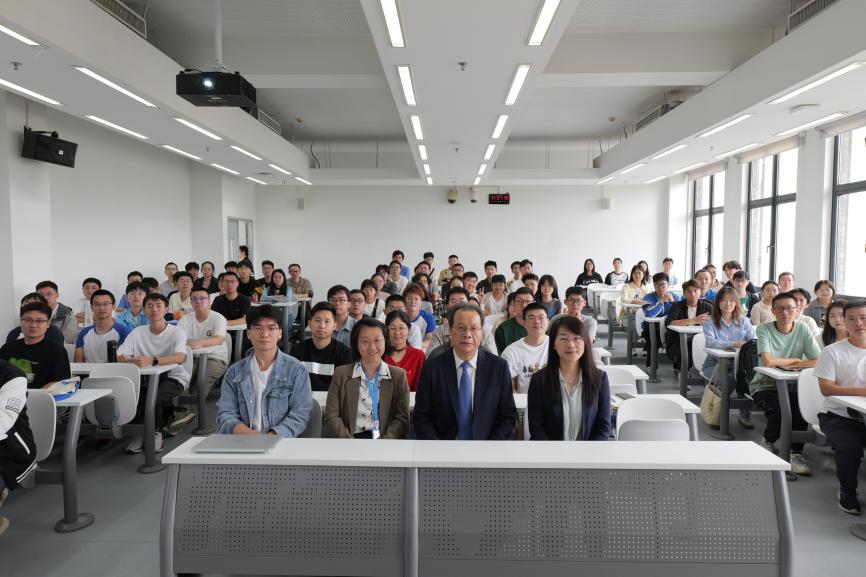 副院长邵丽华教授主持。卢天健教授以其传奇的人生阅历、深厚的学术功底、前瞻的创新思维,为大家带来了一场关于科技创新、学科发展、人才培养和关于超结构畅想的精彩报告。在学术前沿分享部分,他回顾了轻质结构功能一体化超结构的发展历程,通过引入多尺度人造多孔结构,实现了对传统装备设计的重大革新。随后,提出超结构研究面临的关键科学问题,结合航空航天等领域的案例,分析其工程应用现状及未来发展前景。并且将超结构概念扩展至脑科学领域,揭示含液多孔脑结构到宏观功能之间的关系,为颅脑过载防护和脑创伤治疗等提供理论框架。最后,卢天健教授对力学在各个领域的重要应用进行了展望,对青年学子的成长和成才提出了建议,表达了对学生们为祖国繁荣富强而努力奋斗、勇于创新的殷切希望。