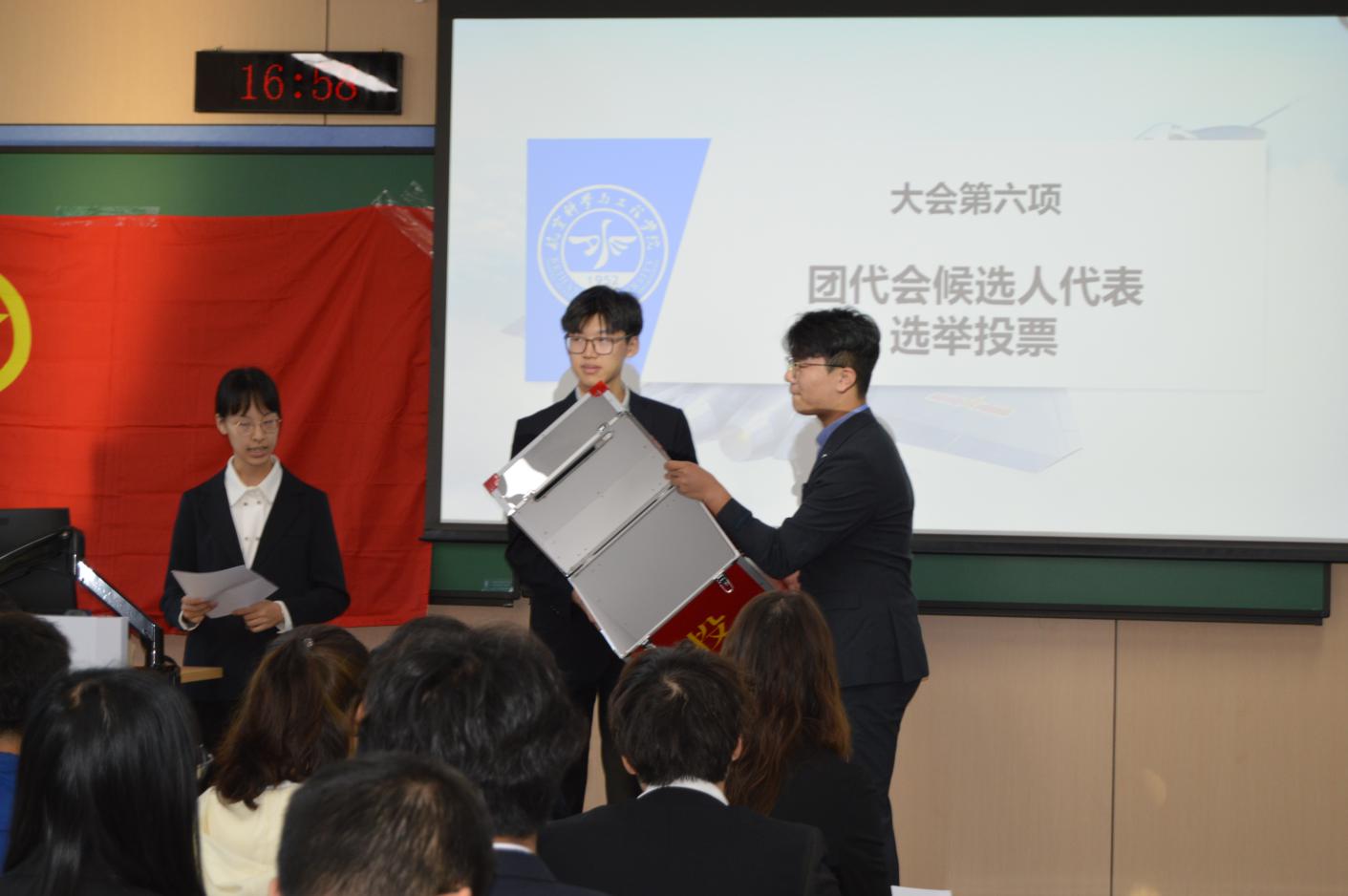 团内民主选举是加强团的组织建设和团组织战斗力的重要举措,要高度重视、正确认识。当选的代表将肩负全院团员的信任和重托,争当解放思想、与时俱进、开拓进取、创新发展的先锋,充分发挥模范带头作用,认真履行代表职责,积极建言献策,圆满完成好共青团北京航空航天大学第二十二次代表大会的各项任务。