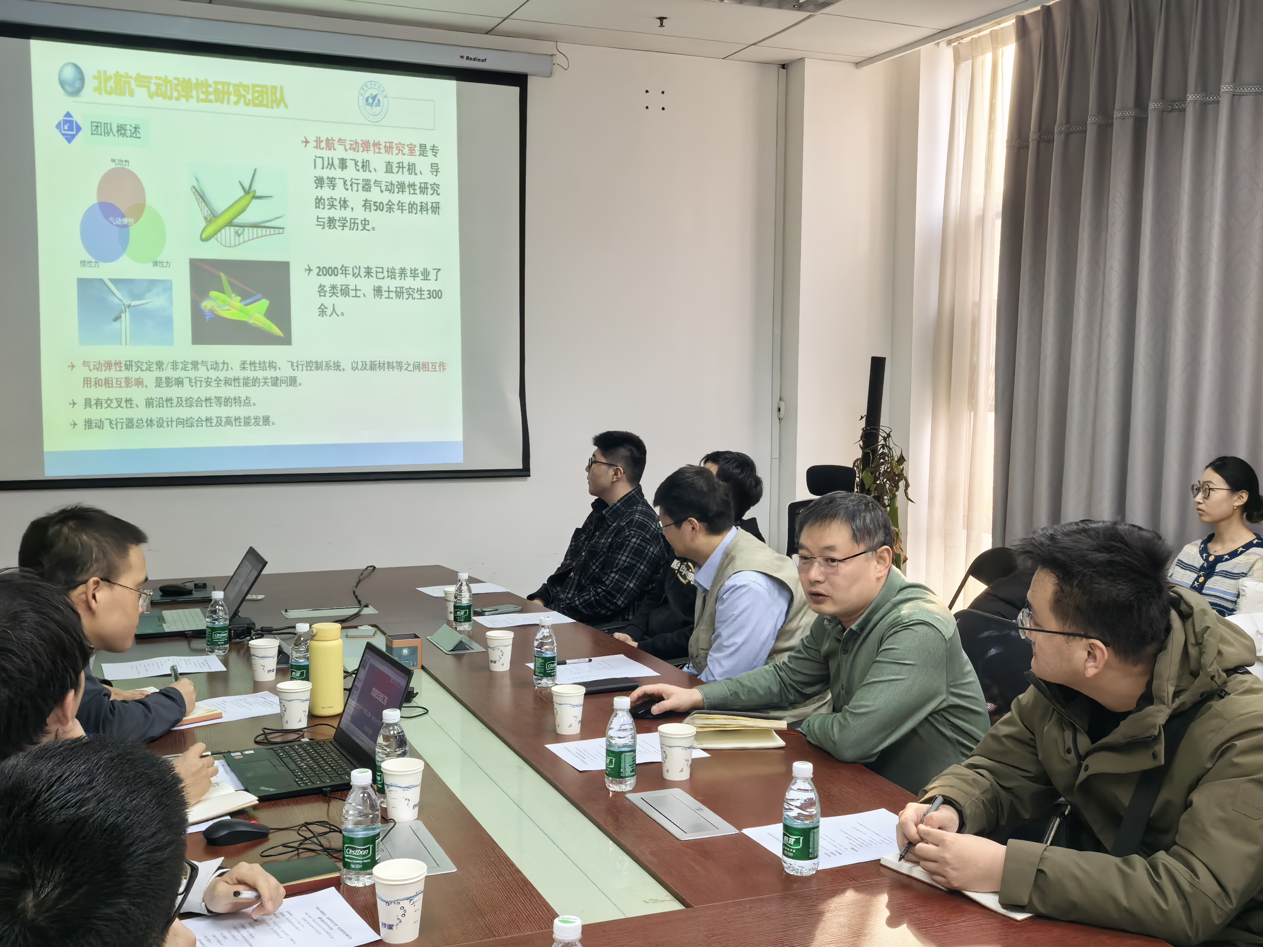 谢长川副研究员从北航气动弹性研究室近50年来的历史讲起,对气弹室的人员构成与科研成果等内容进行了详细介绍;周明昊同志进一步对气动弹性学生党支部建设的情况进行了简要介绍。一飞院总体气动所第四党支部书记张超系统介绍了一飞院的发展历程、现状以及部门架构、专业设置等情况,并重点阐述了单位在科研创新中取得的多项成果与荣誉。同时,张超书记还介绍了总体气动所党支部的基本情况,重点围绕政治建设、思想建设等九个方面进行了深入说明。