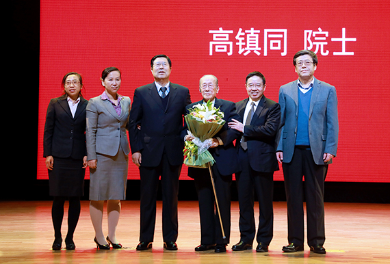 中国科学技术协会党组书记怀进鹏院士为高镇同院士颁发北京航空航天大学2017年“立德树人成就奖”。高镇同对学校的关怀表示感谢,他回忆了自北航建校之初自己投身学校教学、科研和工作的经历,并对学校65年来飞速发展取得的成绩表示赞许和欣慰。他特意赋诗两首,“蓝天如洗艳阳春,青山绿水叠翠林;风清气正昭日月,美丽中国颂古今”“爱我中华意志坚,壮怀谱写报国篇;伟大复兴中国梦,锦绣前程会群贤”,为党和祖国献上诚挚祝福。