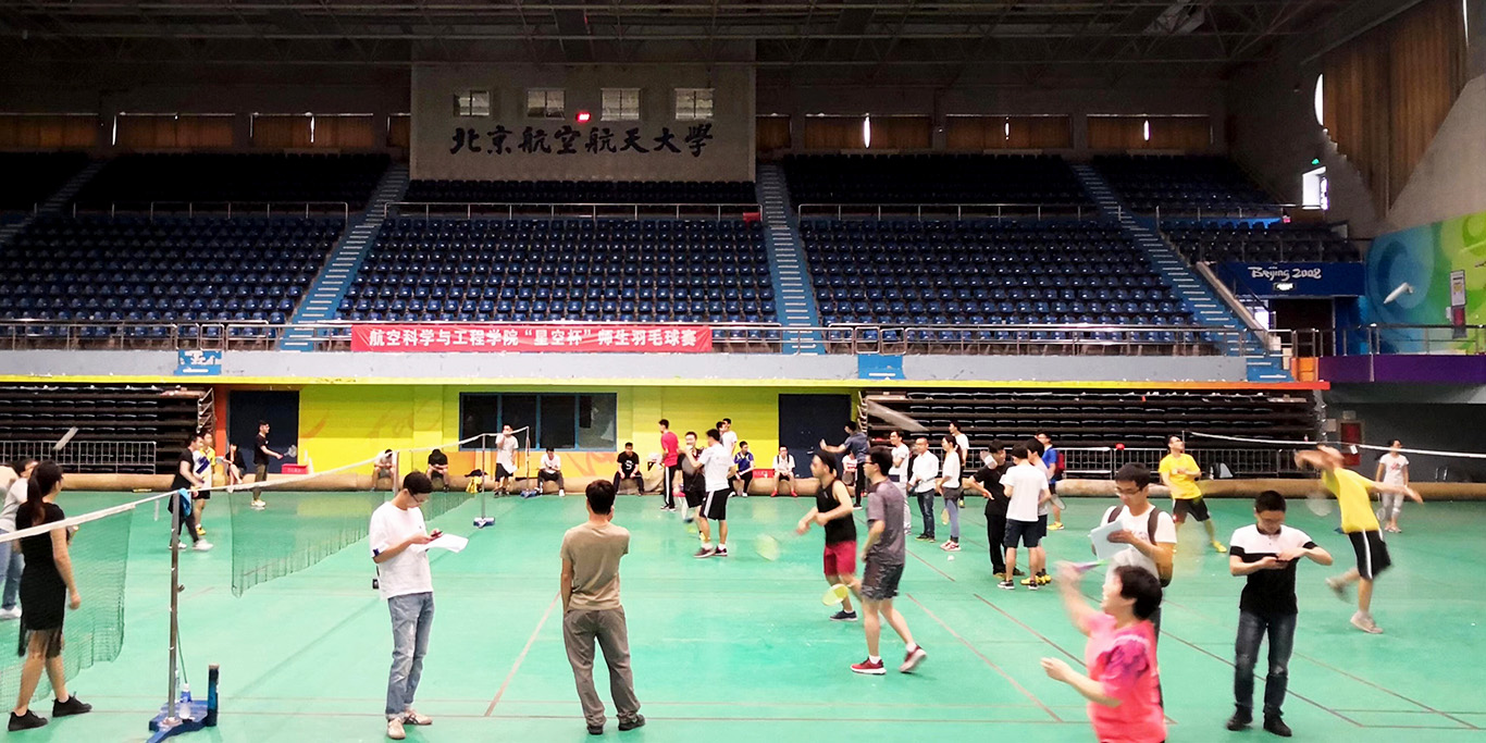 此次“星空杯”师生羽毛球赛的比赛地点为北航羽毛球馆主馆。早上7点30分左右,很多参赛选手和助威的师生就已经来到比赛场地进行热身备战,场内气氛活跃。