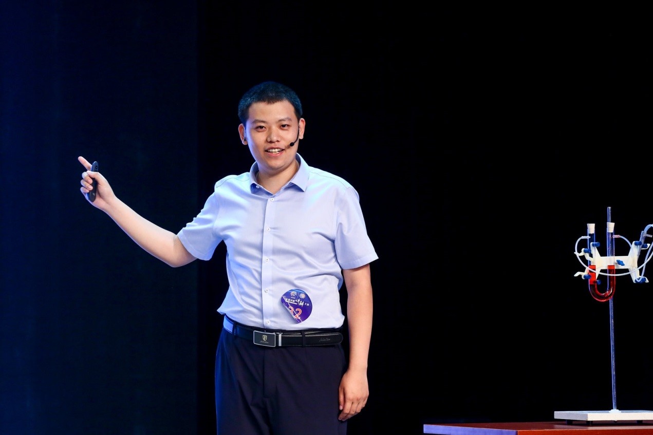 博士研究生王依兵,经过工信部初赛选拔代表工信部参赛并获得优秀奖。他的自主命题讲解题目是《飞机的长“鼻子”是做什么用的》,用生动的语言和有趣的实验向观众阐释了飞机空速管的测量原理,展示了手机百家乐网址大全