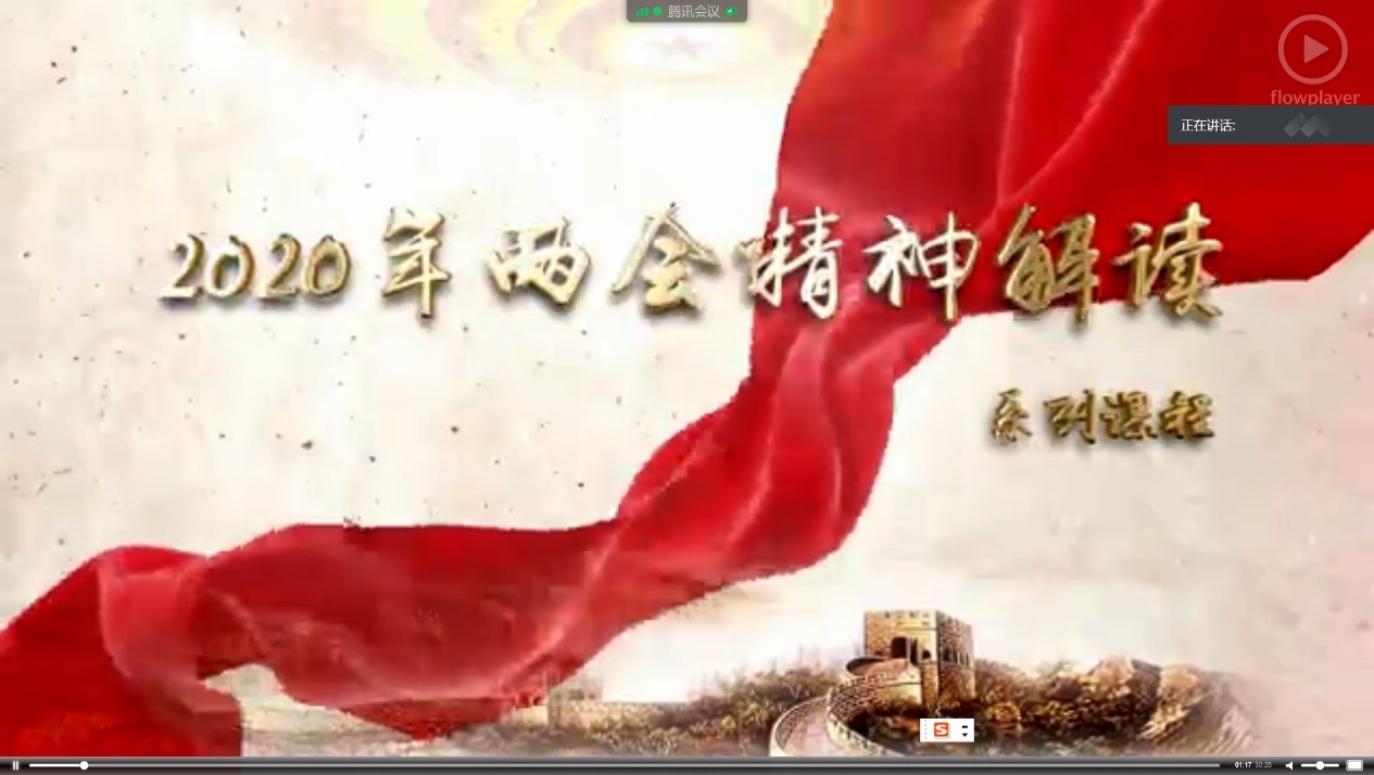 会上,全体参会人员集中观看了视频讲座《当前经济形势与政府工作报告解读》。面对新冠肺炎疫情的冲击,我们如何统筹推进疫情防控和经济社会发展工作,如何实现脱贫攻坚、全面实现小康社会目标,怎样化危为机应对更加不确定的世界经济格局,视频讲座作出了全面、详实的分析,帮助大家深刻理解掌握全国两会精神。