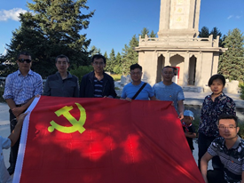 25日上午,支部成员来到张北城南的苏蒙烈士陵园瞻仰晋谒。陵园由纪念塔、纪念碑和烈士墓三部分组成,是为纪念抗日战争中在此牺牲的苏蒙联军将士而建。园内苍松翠柏,绿树成荫,支部成员认真聆听讲解,询问当年战斗的概况和过程。