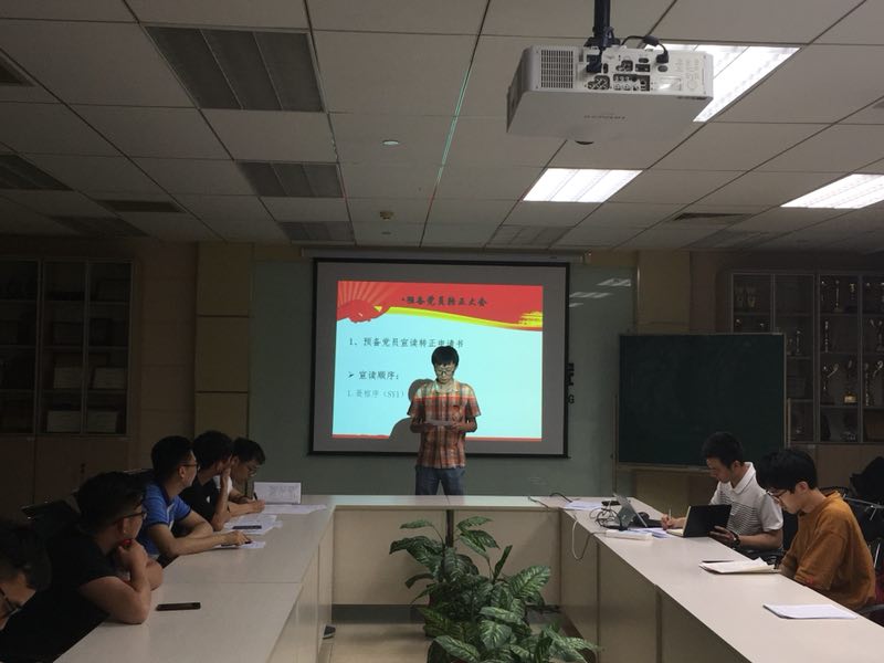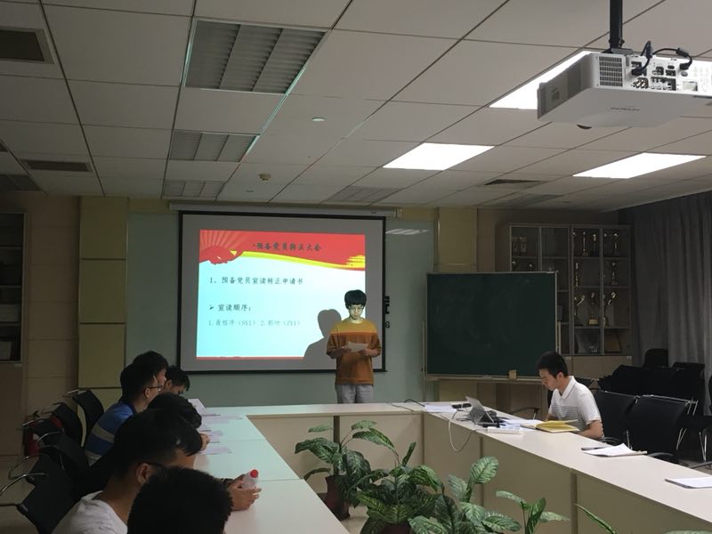 会议由党支部书记范镕韬主持,与会的正式党员13名。首先全体党员起立奏唱国际歌,然后由申请转正的预备党员聂榕序同志宣读自己的转正申请,详细汇报了自己在预备期间的表现,表达了入党的志愿和决心,并对自己在思想、学习和工作上的进步与不足做了认真的总结。聂榕序同志的入党介绍人吕甘霖同志对他预备期一年的思想、学习、工作和生活等各方面表现进行总结评价。接着其他党员纷纷发表意见,肯定了聂榕序同志过去一年所取得的成绩以及思想和工作上的进步。接下来,预备党员郭帅同志宣读了自己的转正申请,汇报了自己在预备期间的表现,表达了入党的志愿和决心,并总结了自己预备党员期间在工作和思想上取得的进步。郭帅同志的入党介绍人范镕韬同志对郭帅同志预备期一年的思想、学习、工作和生活等各方面表现进行总结评价。最后全体与会党员进行了投票表决,一致同意聂榕序同志和郭帅同志按期转为正式党员。