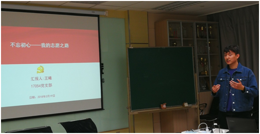 硕士17054党支部在C708举行了以“不忘初心、牢记使命”为主题的十九大报告学习心得分享会。这次分享会以小组为单位,其他党员同志点评的形式进行。党支部分为四个学习小组,各小组分别就文化建设、三农政策等方面展开分享,内容丰富,形式多样。