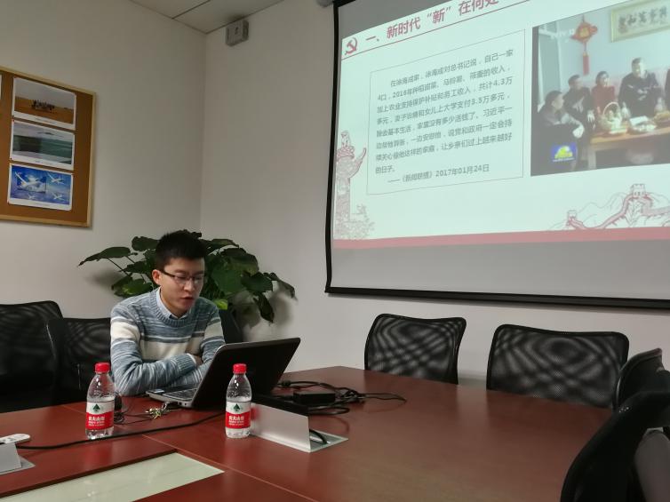 唐鹏飞同志从两方面分享了他对十九大精神的理解。首先,他从新时代“新”在何处入手,详细分析近五年以来我国人民生活水平、经济质量、国际地位和科技等的迅猛发展,促使中国特色社会主义进入了新时代。他从历史和现实,理论和实践以及国内和国外三个角度深入浅出地阐述了中国特色社会主义进入新时代的意义。同时,他以参加北航研究生宁夏支教团经历为例,指出虽然中国特色社会主义进入了新时代,但仍有很多亟待解决的问题,如拼土地、拼资源、拼劳动力的发展方式、社会保障不够健全、有法不依、社会生态环境有待充分改善等。接着,唐鹏飞指出青年要承担起时代的重任,要不忘入党初心,牢记时代使命。要做一名在党爱党、在党言党、在党忧党、在党为党的四讲四有合格青年党员。