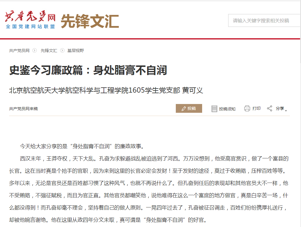 本科1605党支部组织开展以党风廉政建设为主题的“史鉴今习”廉政故事分享特色活动。