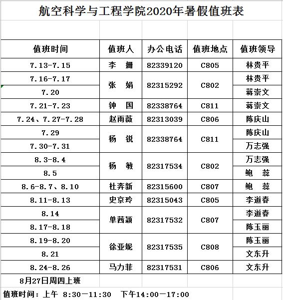 手机百家乐网址大全 2020年暑假值班表(7月13日-8月26日)