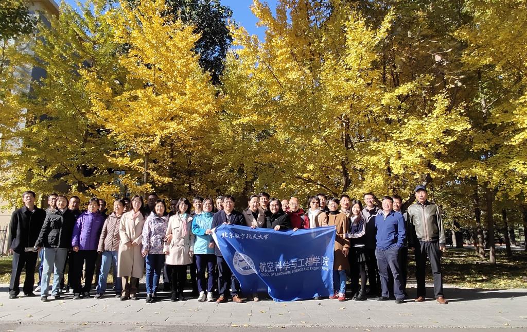 大家从新主楼C座出发,途中大家一边交流,一边欣赏深秋校园的美景,经过永嘉易站、航空航天博物馆、西府海棠咖啡馆、办公楼银杏林到老主楼“为人民服务”匾额,并进行合影留念。