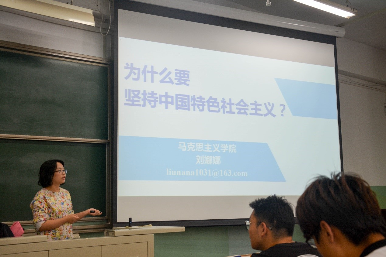 为引导学生深入学习习近平新时代中国特色社会主义思想,学习党的基本理论、基本路线和基本方略等,学院邀请马克思主义学院刘娜娜老师为2017级的本科生带来主题为“为什么要坚持中国特色社会主义”的讲座。