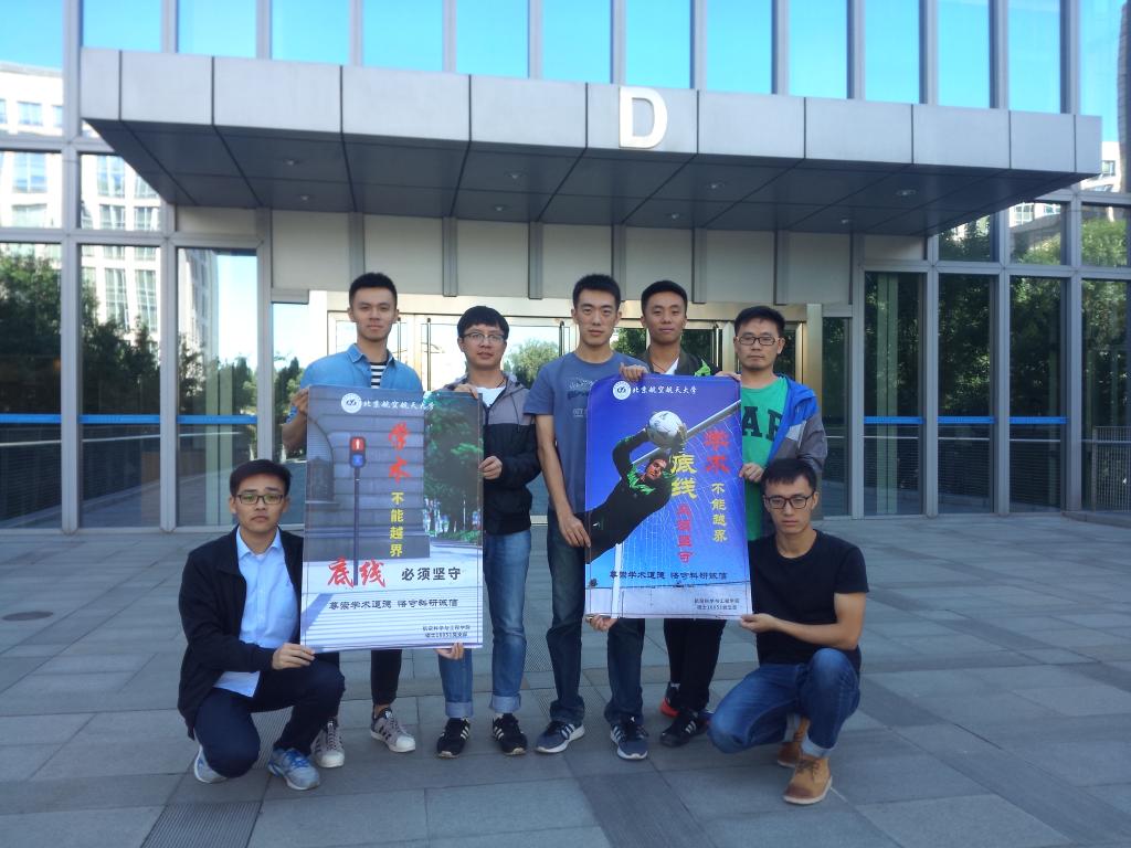 硕士16051党支部积极响应北京航空航天大学2017年党风廉政建设工作要点和党风廉政宣传月第五届“诚信、勤俭、廉洁”创意设计大赛活动的号召,自行设计了科研诚信宣传海报。并且,为了进一步让科研诚信深入同学们心中,提高同学们对于科研诚信的重视,党支部组织部分成员于9月28日中午在校园内张贴宣传海报,倡导科研诚信。