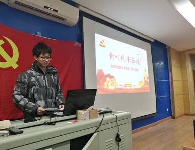 2018年12月28日晚,硕士18053党支部与Y18091党支部联合举办的读书交流会在主楼213成功举行,会议对上次会议理论学习做了补充,就改革开放四十周年大会上习近平总书记重要讲话进行了感想交流与探讨;同时,部分同志以小组为单位分享了他们为期一月的读书成果与收获。会议由硕士18053党支部书记耿坤昊同志主持。