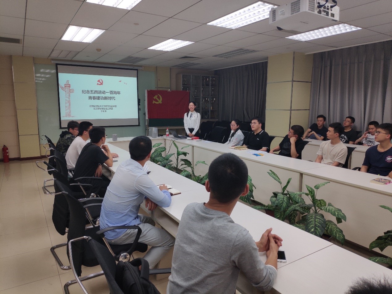 博士生17051学生党支部在新主楼C708召开了支部会议,进行“五四精神”专题学习,共有39名党员同志和积极分子参加。会议邀请了来自北京航空航天大学研究生宣讲团的于秋漫讲师,她为与会同志们带来了题为《纪念五四运动一百周年,青春建功新时代》的宣讲。