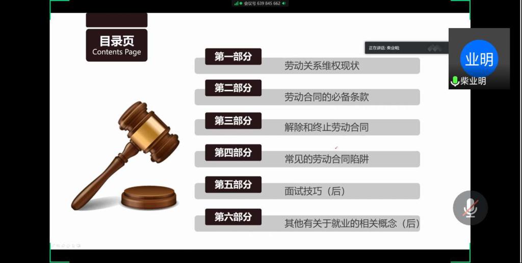 在第一学习小组的党课中,柴业明同志结合实习经历,为党员带来了主题为《毕业求职-法律知识专题》的专业知识分享,他详细介绍了劳动合同的必备条款、常见陷阱以及解除和终止劳动合同等内容,增强了同志们就业方面的法律意识,之后结合自身经历介绍了面试技巧以及其它就业的相关概念。此次分享使同志们的综合素质得以提升,为今后的就业求职打下良好基础。
