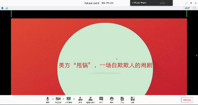 刘易哲同志以《美方甩锅,一场自欺欺人的闹剧》为主题为第二学习小组讲授党课,他围绕着美方在疫情期间对中国政府的抹黑行为展开,深入分析了疫情背景下中美关系,帮助支部党员深刻理解疫情背景下的国际局势。刘易哲同志分别就美方暂停向世界卫生组织拨款、美方多次发表的“病毒起源阴谋论”和美方向中方的“起诉”和“索赔”闹剧三个热点事件中美方的“甩锅”行为进行了介绍,与中国的回应和行动形成了鲜明对比,之后分析了美方与中国进行舆论战的三个目的,提出在贸易战、舆论战的背景下中美关系持续下滑,中国要做好迎接挑战的准备。