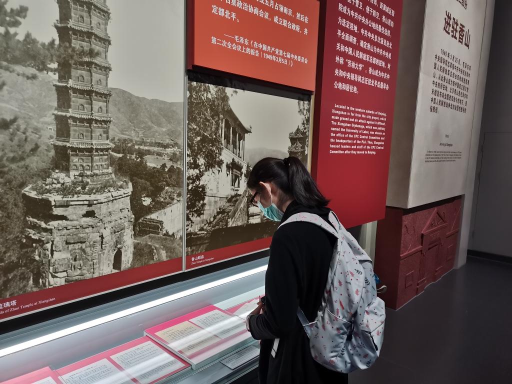 王驰:香山是中国人民解放战争走向全国性胜利的指挥部,在这里我看到了人民群众在大街两侧欢迎解放军进城的历史照片,看到了国民党高级将领来香山和谈期间对中国共产党的认可,还看到了非常珍贵的开国大典的历史影像资料,由衷地为中国共产党实现人民解放并迈向复兴之路感到自豪。