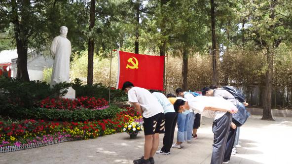 献花活动结束后,党支部同学面对党旗,宣读入党誓词。此次宣誓在烈士陵园中进行,不仅强化了个人的入党初心,也是在革命先烈的影响之下,进一步提升作为一名党员同志的使命意识。李大钊等先辈为了中国革命事业不断奋斗,方才换来我们现在繁荣稳定的生活;作为后辈的我们许下庄严誓言,表达着当代青年接续前进的决心。柏树森森,先烈长眠,同学们伫立良久,感触颇多。